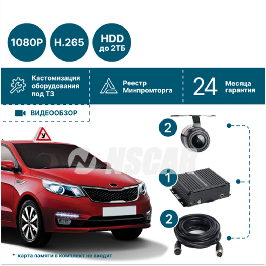 Комплект для автошколы на 2 камеры NSCAR 201 HD - надёжное решение для видеонаблюдения в учебном автомобиле.